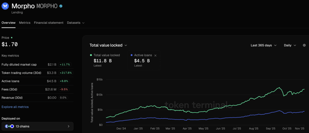 MORPHO menunjukkan potensi bullish yang menarik di tengah konsolidasi harga jangka menengah yang terjadi saat ini. Ini seiring dengan terlihat semakin konsistennya peningkatan adopsi platform DeFi Morpho di tengah gejolak pasar dalam beberapa pekan terakhir yang dapat dilihat dari kenaikan TVL dan jumlah pinjaman aktif di platform tersebut. TVL Morpho melonjak signifikan, meningkat sebesar hampir $1 miliar dalam satu pekan terakhir. Volume trading token MORPHO yang juga cenderung naik dalam satu bulan terakhir turut berpotensi meningkatkan atensi investor terhadap MORPHO.