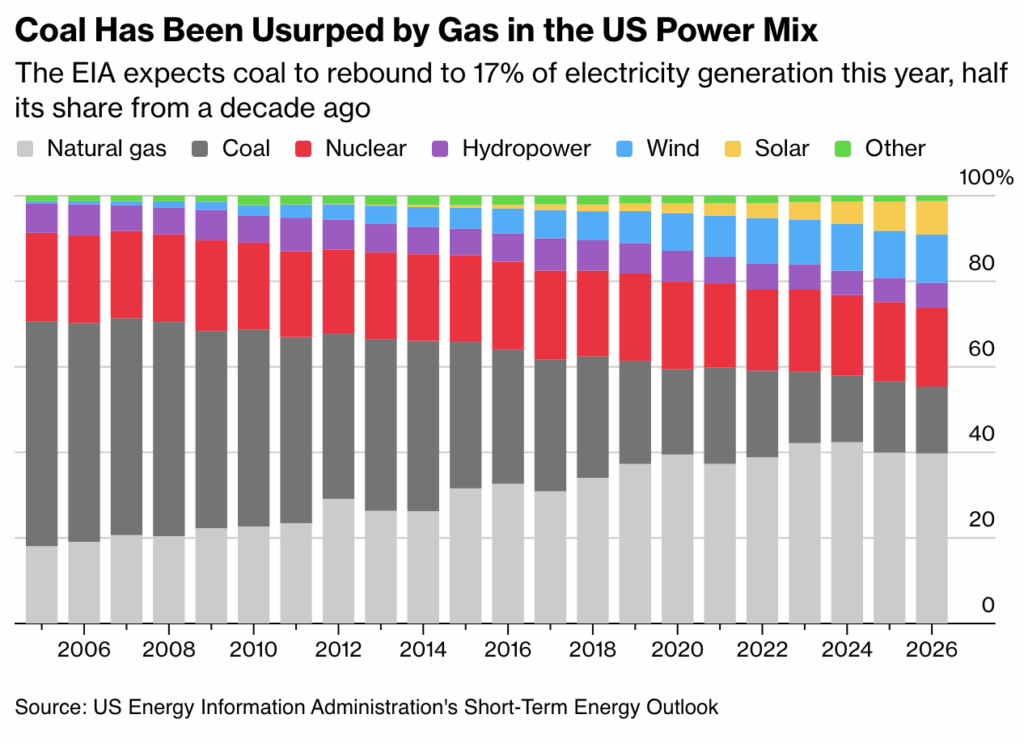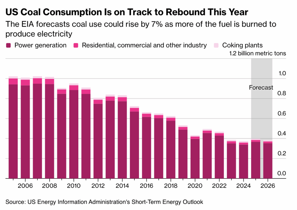 Kombinasi dari harga gas alam yang melonjak, ledakan kebutuhan listrik dari pusat data (data centers), serta kebijakan pro-batubara Presiden Donald Trump, menjadi pendorong utama lonjakan konsumsi batubara AS tahun ini.