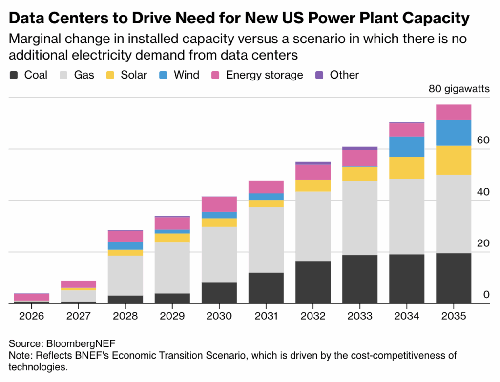 BloombergNEF memperkirakan data center akan menyerap 7% konsumsi listrik AS pada 2030, naik dari sekitar 4% saat ini.