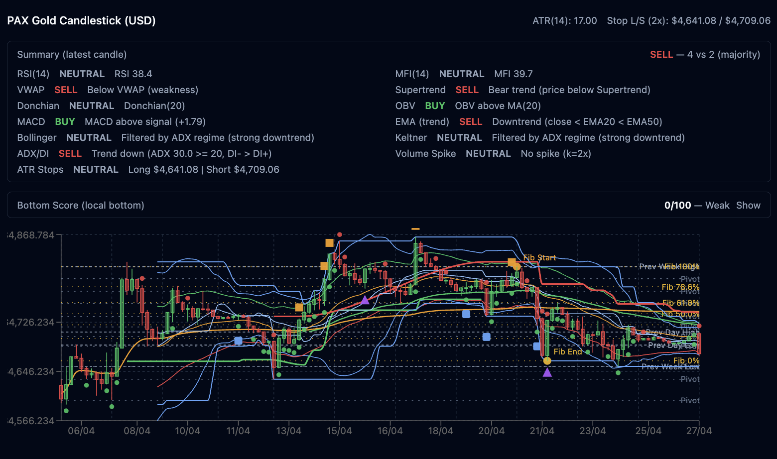 PAXG (PAX Gold) – Harga saat ini ≈ $4,706.05