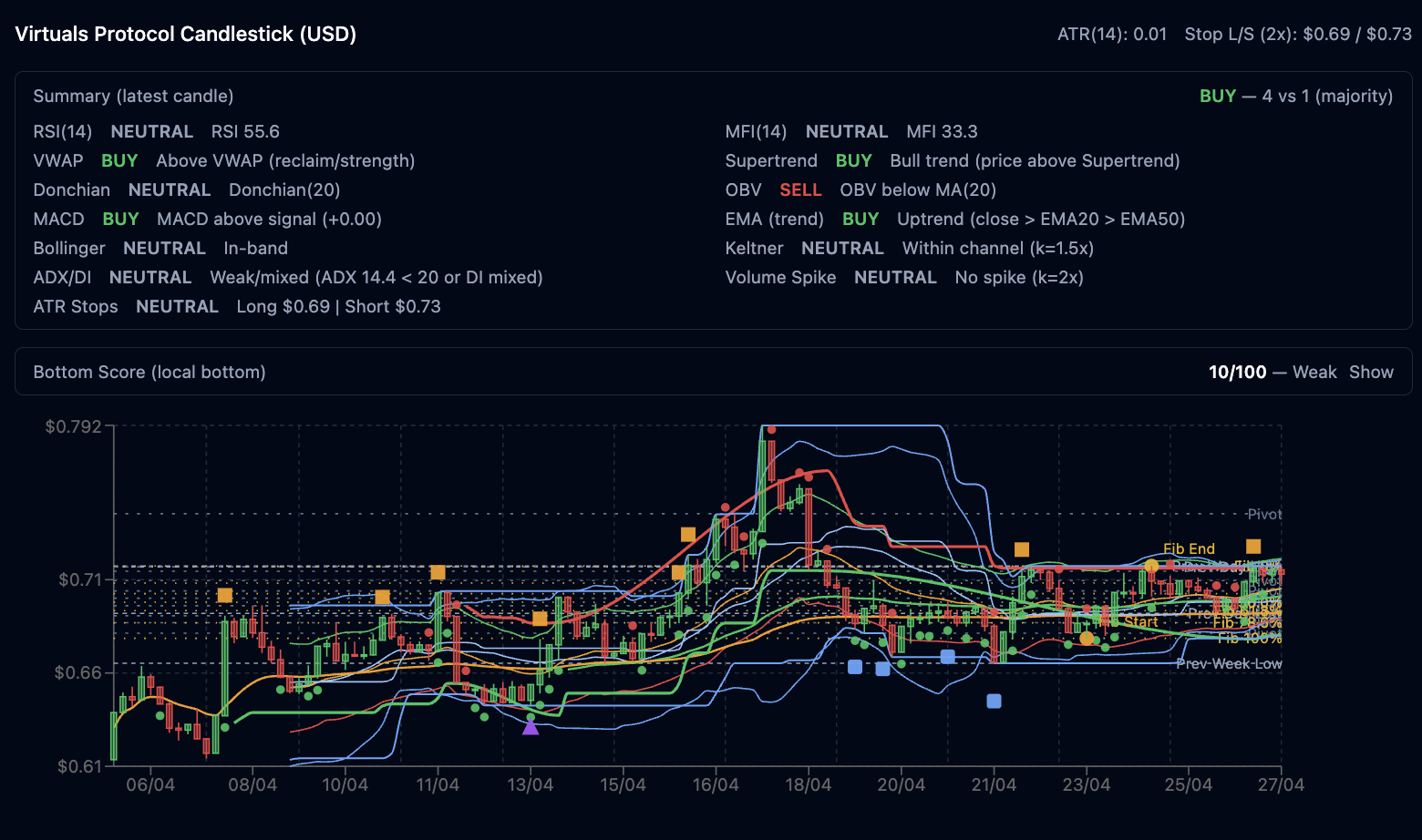 VIRTUAL (Virtuals Protocol) – Harga saat ini ≈ $0.7306
