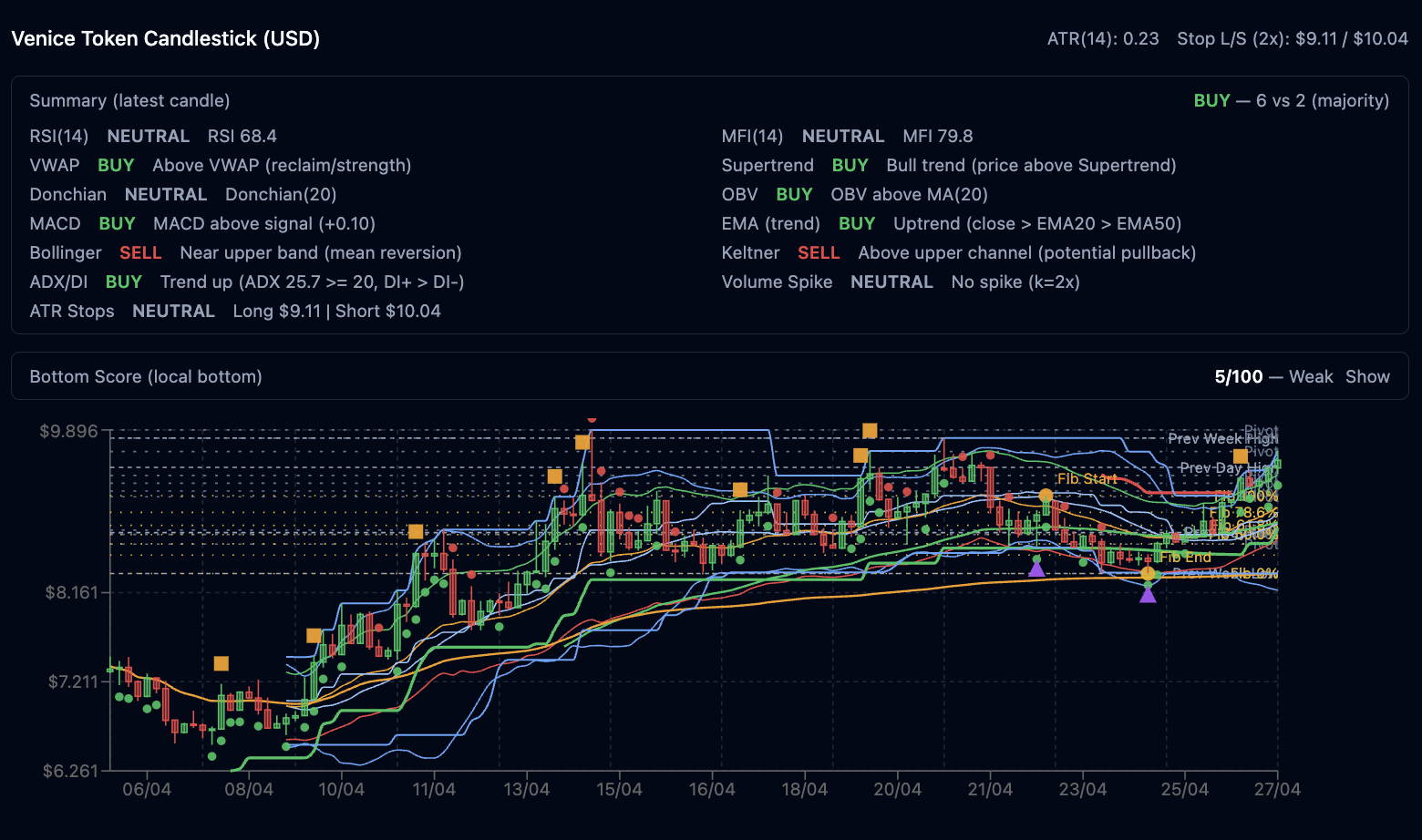 VVV (Venice Token) – Harga saat ini ≈ $9.56