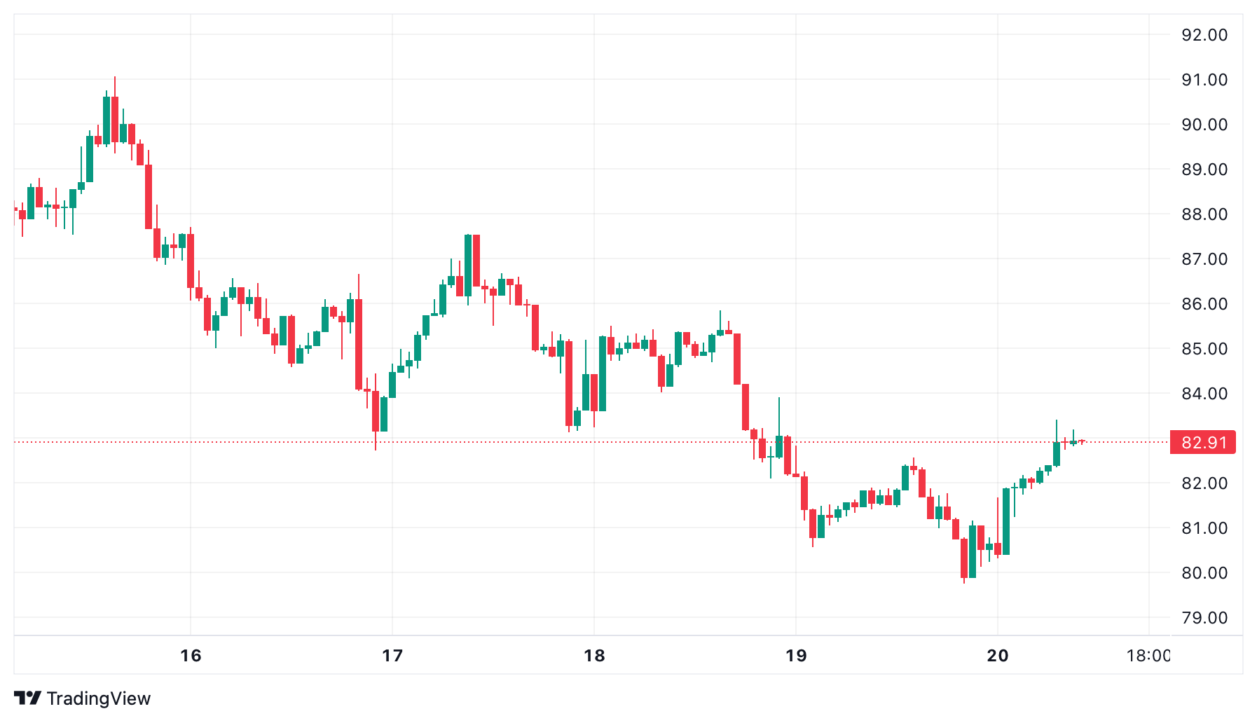 Solana masih terjebak di bawah level psikologis $90, bahkan sempat menyentuh area $80–$82. Saat ini SOL berada di sekitar $82–$83, membentuk pola lower highs dan lower lows yang menandakan downtrend jangka pendek. Meski ada peningkatan aktivitas on-chain, tekanan jual dari posisi loss-cutting dan korelasi dengan BTC membuat rebound sulit terjadi. Jika support utama gagal bertahan, potensi penurunan lebih lanjut ke $70-an atau bahkan lebih rendah masih terbuka lebar.
