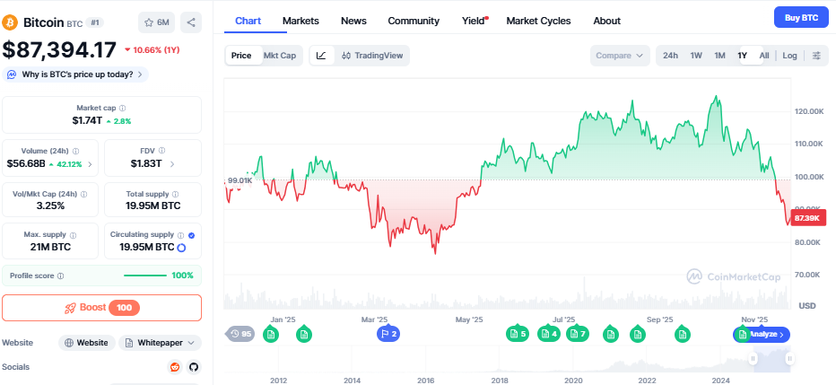 21 Nov BTC jatuh ke $87.000 (terendah 6 bulan) Likuidasi $2 miliar+