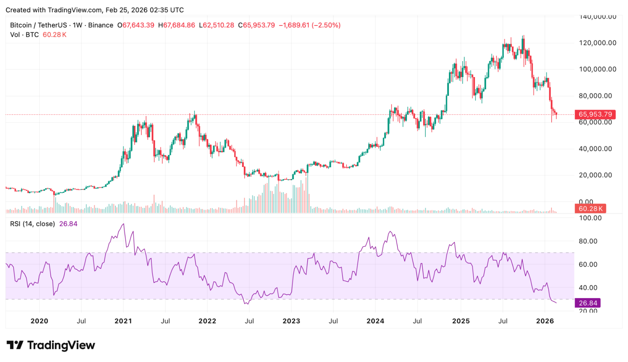 Bitcoin RSI Mingguan Sentuh Level “Oversold” Ekstrem, Akankah $60K Bertahan?