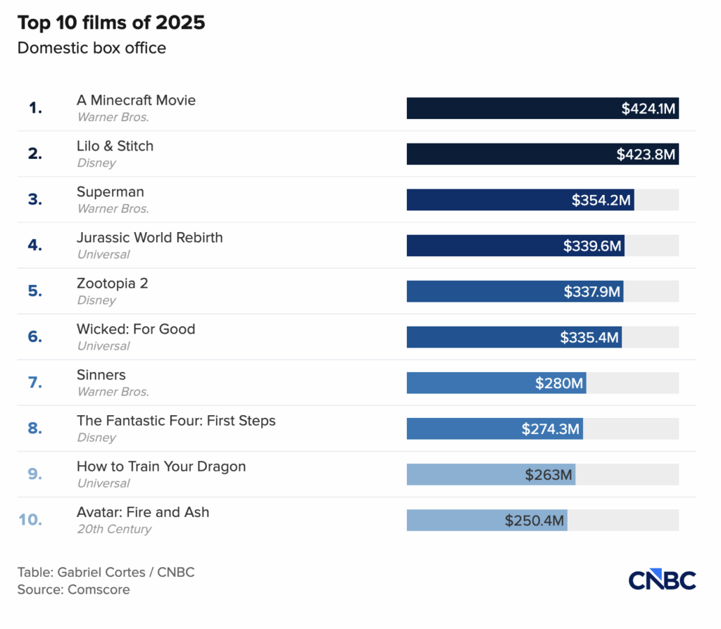 Kesuksesan Disney pada 2025 sebagian besar ditopang oleh film-film dari waralaba yang sudah sangat dikenal publik. Empat film Disney masuk dalam daftar 10 film dengan pendapatan domestik tertinggi tahun ini, termasuk:
