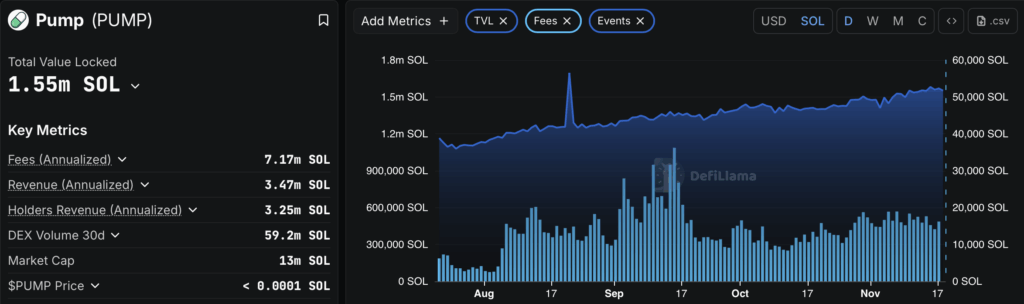 PUMP menunjukkan potensi bullish yang menarik. Di tengah relatif ketatnya kondisi likuiditas saat ini dan meningkatnya kehati-hatian investor, platform Pump.Fun justru membukukan pendapatan yang konsisten dengan angka TVL yang meningkat, khususnya dalam satu pekan terakhir ini. Terlepas dari sentimen bearish yang cukup kuat saat ini, kita bisa melihat optimisme para crypto enthusiasts khususnya yang menggemari meme coin, belum redup sepenuhnya. Ini bisa menjadi fondasi yang solid untuk menunjang berkembangnya sentimen positif bagi token PUMP jika keadaan mulai membaik.
