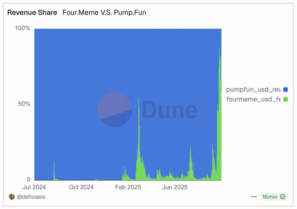 FORM menunjukkan potensi bullish yang cukup solid dengan meningkatnya adopsi platform Four Meme. Lonjakan pendapatan Four Meme yang signifikan membuatnya menjadi pemimpin pasar di sektor peluncuran aset crypto baru saat ini, mengungguli Pump Fun. Dalam satu pekan terakhir, dominasi Four Meme terus meningkat dan bahkan sempat mencatatkan pendapatan harian platform di angka $4 juta pada 8 Oktober. Berlanjutnya tren adopsi aset crypto small cap di ekosistem BNB Chain dapat semakin meningkatkan perhatian investor terhadap FORM.