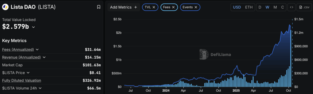 LISTA menunjukkan potensi bullish yang masih solid terlepas dari koreksi harga yang terjadi dalam beberapa hari terakhir. TVL platform DeFi Lista DAO melanjutkan peningkatan dan kini berada di angka $2,5 miliar, naik lebih dari $300 juta dalam kurun waktu kurang dari sepekan. Pendapatan mingguan Lista DAO turut melesat menyentuh angka $1,26 juta yang sekaligus menjadi angka pendapatan satu pekan tertinggi platform DeFi tersebut sejak diluncurkan pada 2022 lalu. Sebagai salah satu platform DeFi utama di ekosistem BNB Chain, berlanjutnya tren positif BNB dapat turut mendorong meningkatnya perhatian investor terhadap LISTA di tengah pertumbuhan adopsi platform yang solid saat ini.