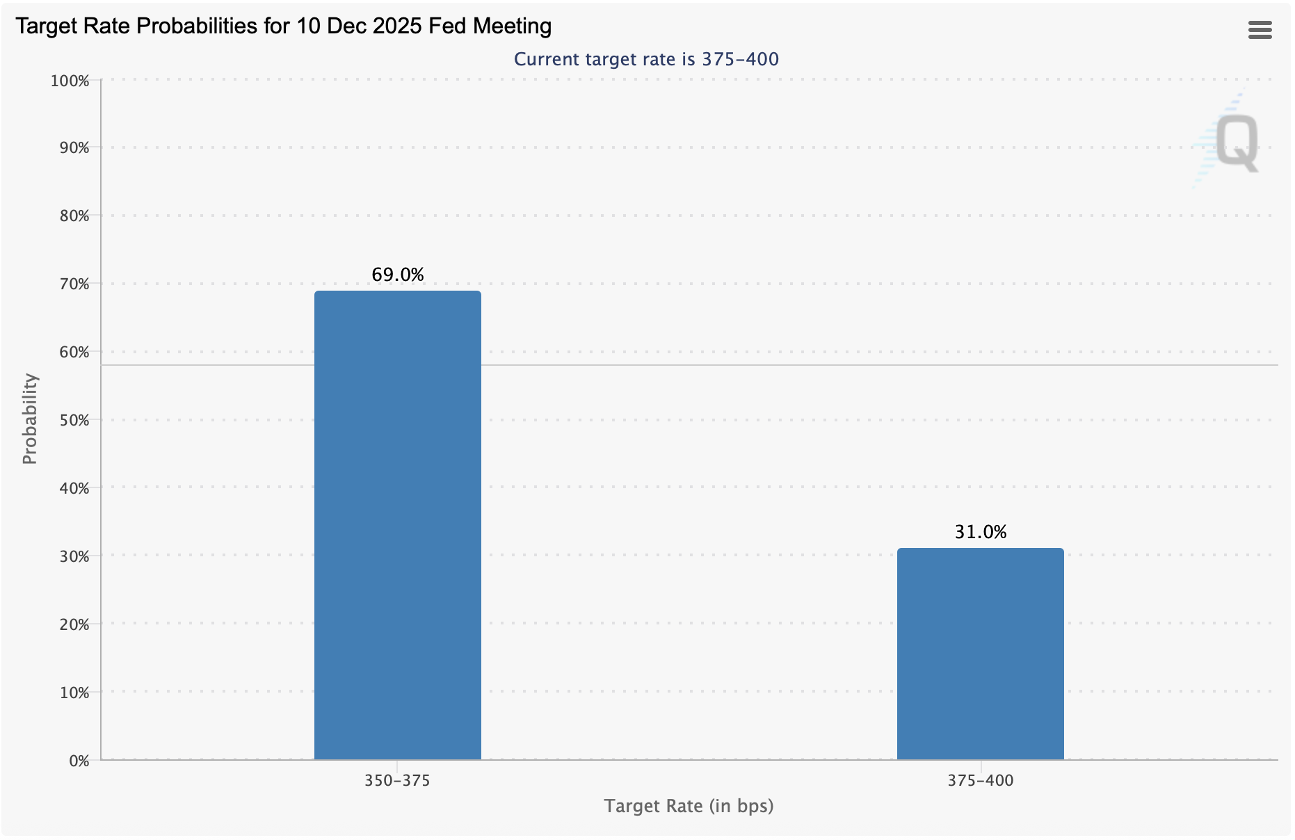 Dua pejabat Federal Reserve kemarin menyatakan bahwa inflasi masih di atas target dan pemotongan suku bunga Desember belum pasti. Akibatnya, Dolar Index (DXY) naik 0,8%, sementara probabilitas rate cut turun dari 90% menjadi 63% menurut CME FedWatch. Kripto memiliki korelasi negatif kuat dengan dolar. Ketika DXY menguat, aset berisiko seperti Bitcoin dan altcoin dijauhi. Ini adalah dinamika makro klasik yang kembali memengaruhi sentimen pasar.