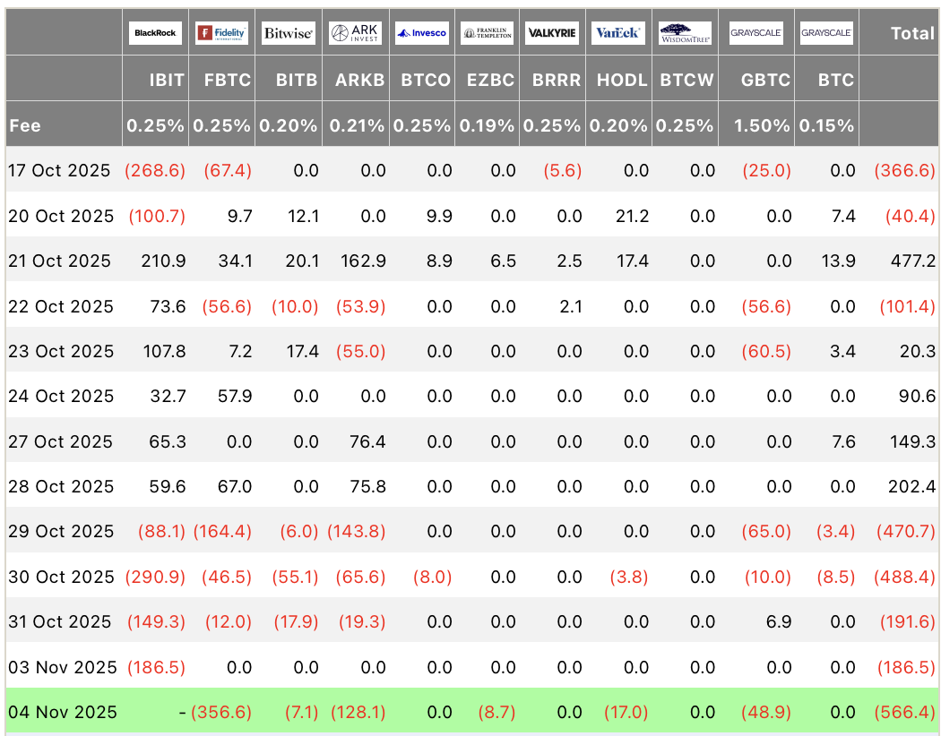 Data ETF pada 4 November menunjukkan sinyal kuat penjualan institusional. BlackRock IBIT mencatat outflow US$186 juta, Fidelity FBTC US$92 juta, Grayscale GBTC US$41 juta, dan total ETF Ethereum kehilangan US$136 juta. Padahal sepanjang 2025, ETF Bitcoin telah menyerap US$14,1 miliar. Kini alirannya macet. Ketika institusi menjual, pasar ritel ikut panik. Ini bukan akhir dari adopsi institusional, tetapi jeda sementara dalam siklus masuknya modal besar.