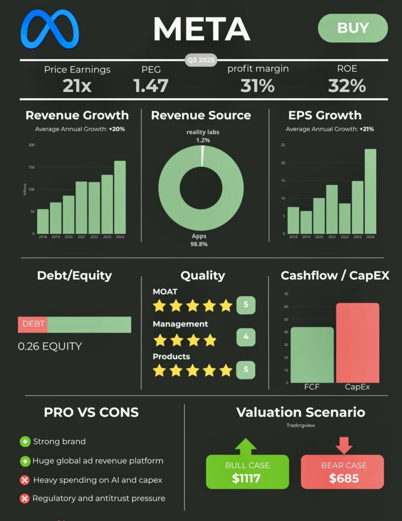 Meta berada di titik krusial. Dalam jangka pendek, sahamnya bisa tetap tertekan oleh kekhawatiran belanja AI dan margin. Namun, jika AI benar-benar meningkatkan efektivitas iklan dan model internal mulai kompetitif, valuasi saat ini bisa terlihat terlalu pesimistis.