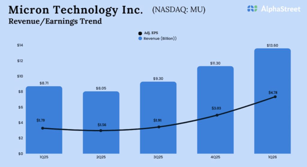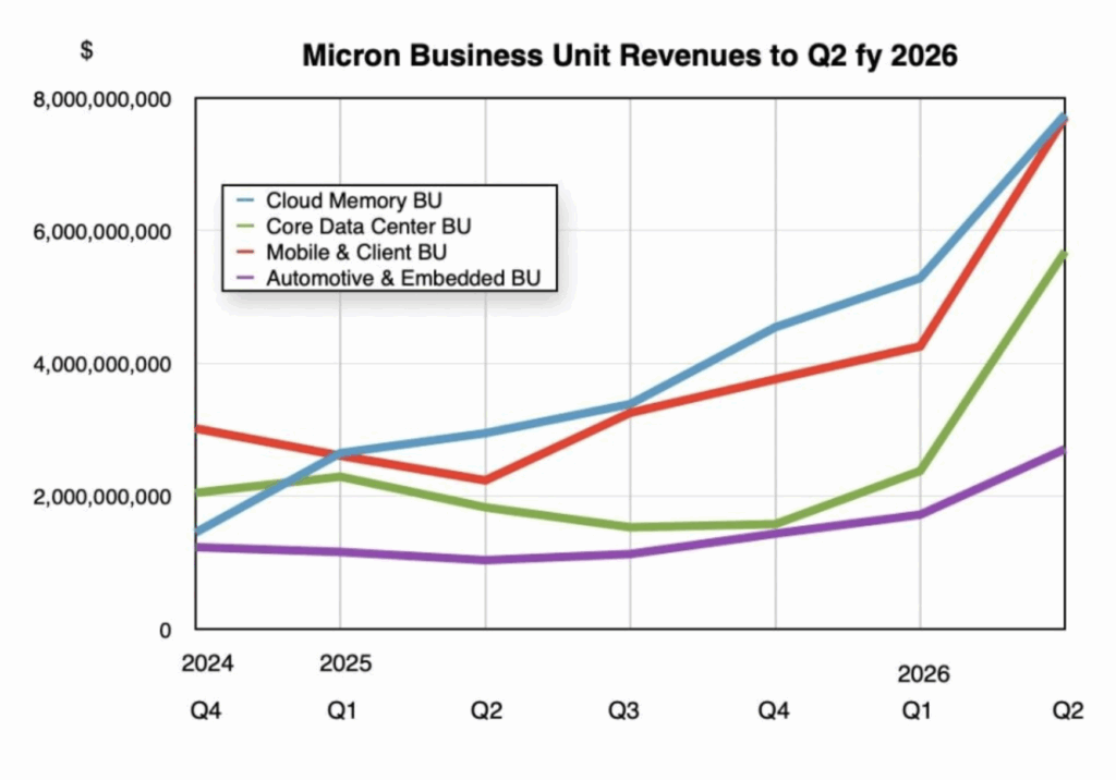Q2 FY2026 yang berakhir 26 Februari 2026 bukan sekadar kuartal yang bagus, ini kuartal keempat berturut-turut yang mencetak rekor, dengan kenaikan sequential dollar terbesar dalam sejarah Micron.