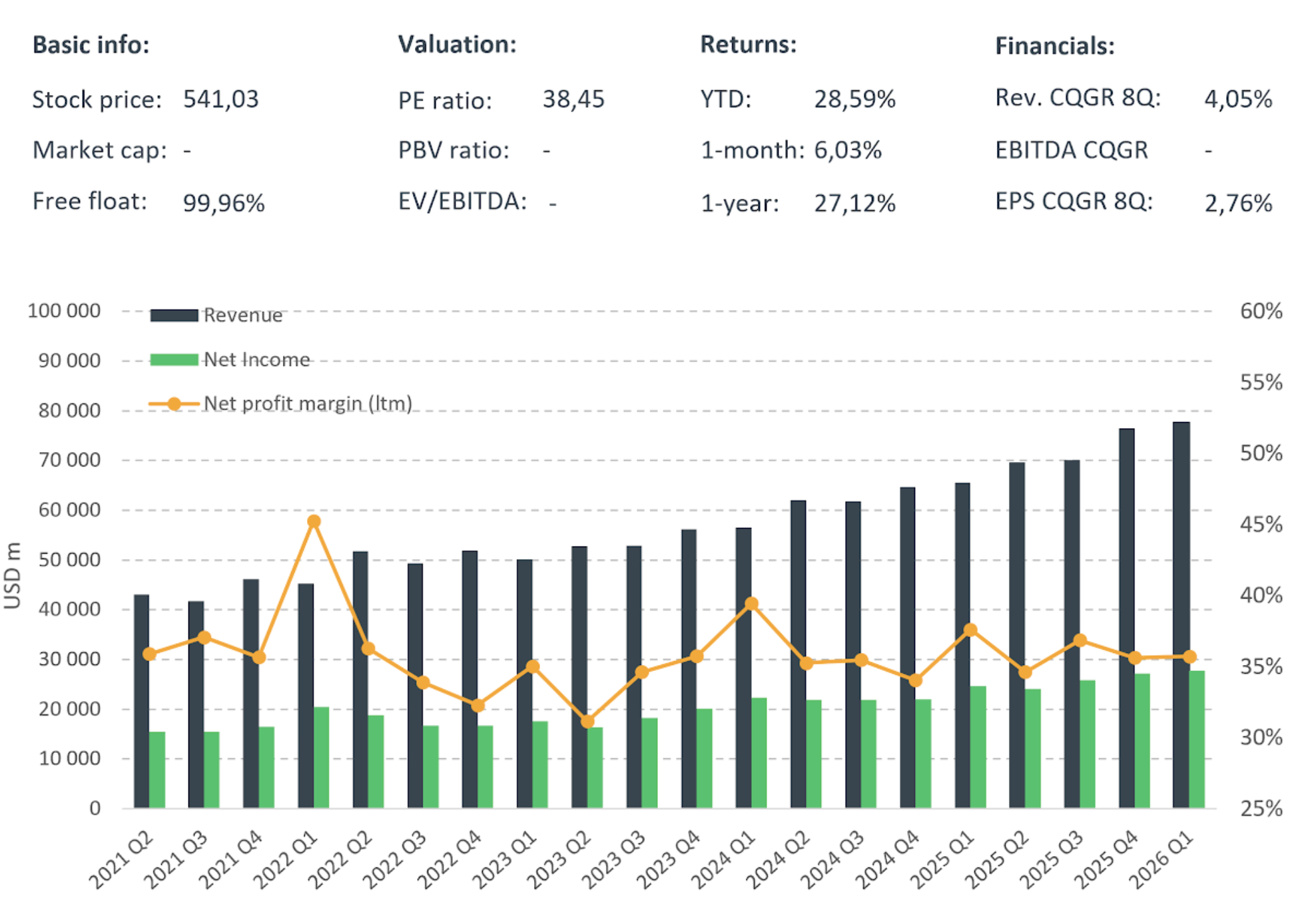 Pendapatan melonjak 18% YoY menjadi $77,7 miliar, sementara laba operasi naik 24% menjadi $38 miliar — keduanya melampaui ekspektasi Wall Street.