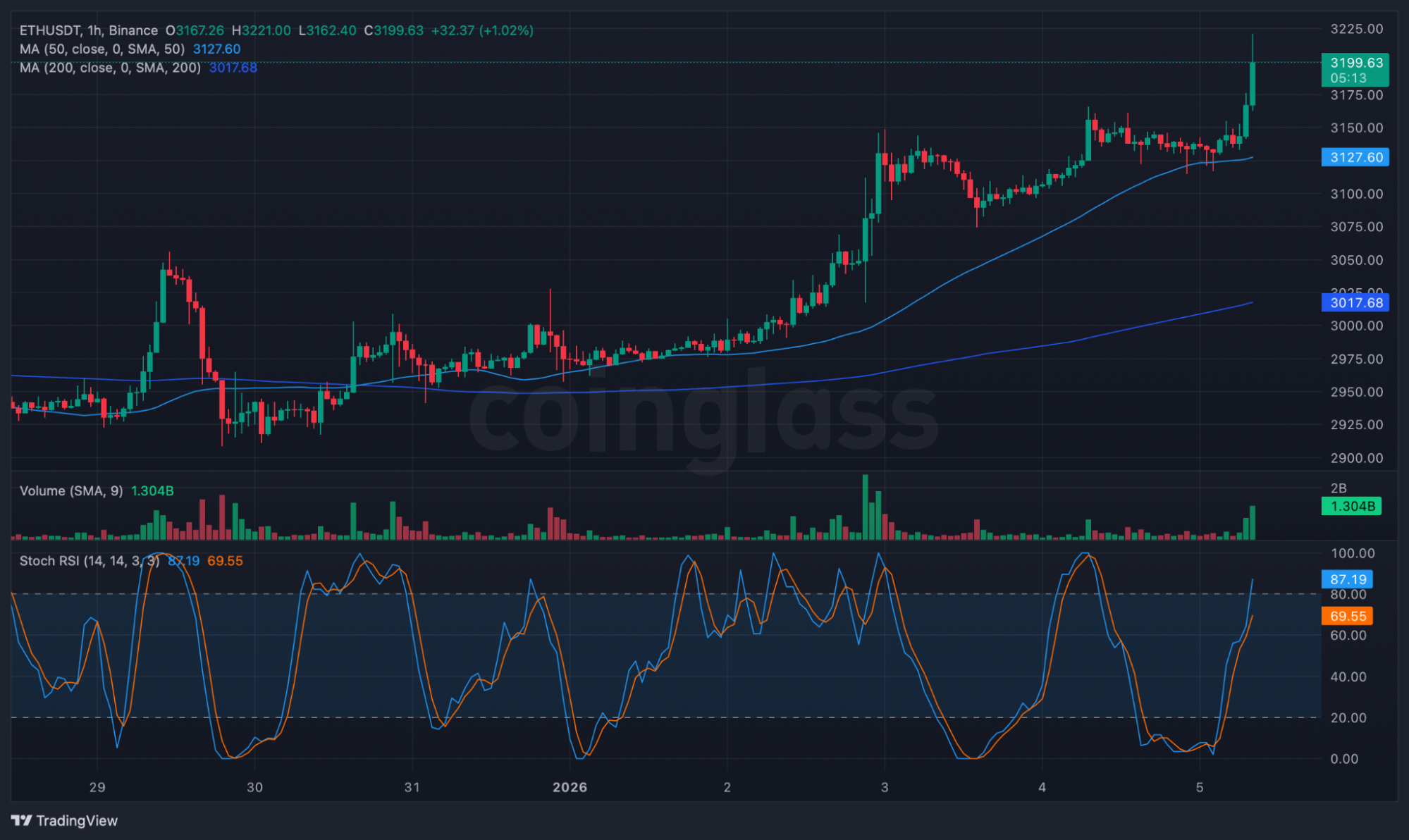 Tidak kalah menarik, Ethereum (ETH) juga mengalami surge yang solid. Harga ETH naik dan stabil di sekitar $3.210, dengan prediksi jangka panjang menuju $7.000. Lonjakan ini didorong oleh adopsi institusional di sektor stablecoin, tokenisasi aset, dan pembayaran digital. Pakar memperkirakan bahwa 2026 akan menjadi tahun besar bagi ETH, di mana inovasi seperti ini bisa “mengejutkan” pasar.