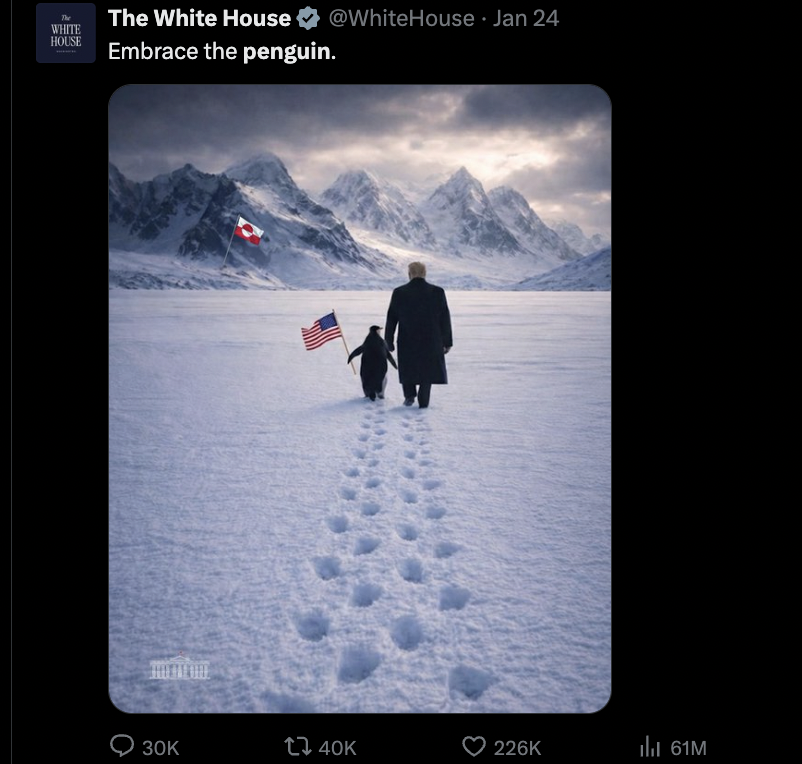 Pada tanggal 28 Januari 2026, narasi penguin meta dalam ekosistem cryptocurrency, khususnya di jaringan Solana, terus menjadi perbincangan utama di kalangan komunitas. Token Nietzschean Penguin ($PENGUIN) telah menarik perhatian luas berkat lonjakan harga yang signifikan, dipicu oleh viralnya konten di media sosial, termasuk unggahan dari akun resmi White House yang menampilkan gambar Presiden Donald Trump bersama seekor penguin di salju (dengan caption “Embrace the penguin”). Namun, pertanyaan kritis yang muncul saat ini adalah: apakah momentum ini masih berada pada tahap awal (early) atau telah memasuki fase kelebihan (overflood) yang berpotensi memudar?
