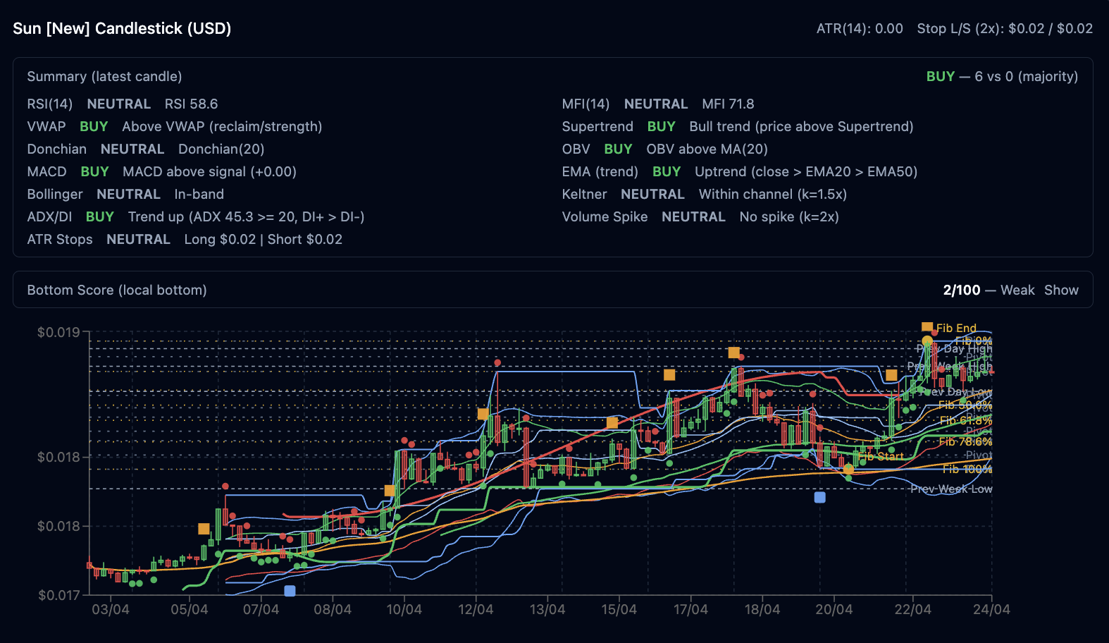 Analisis Teknikal SUN/USDT (harga saat ini ~$0.0189):
