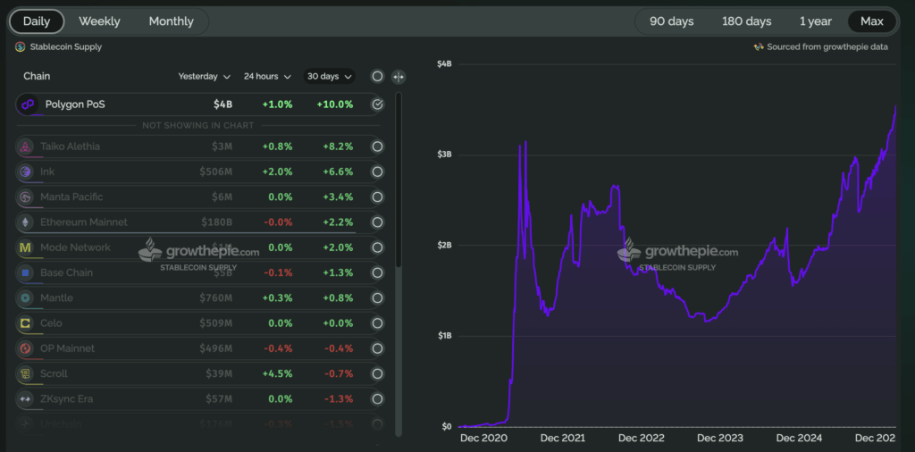 Stablecoin Supply Polygon (POL) Cetak ATH, Lampaui 2021!