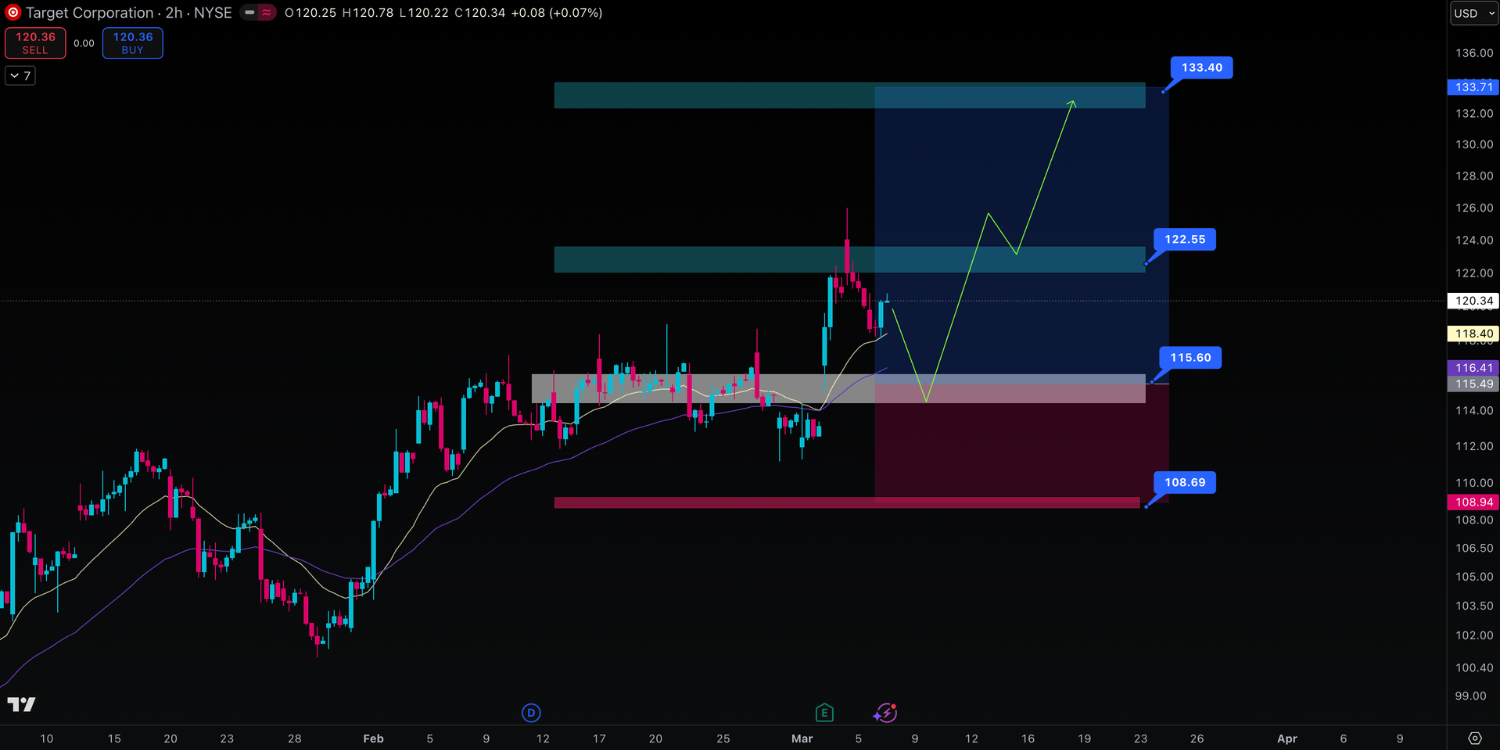 Dari sisi teknikal, struktur harga Target menunjukkan bullish continuation setup.