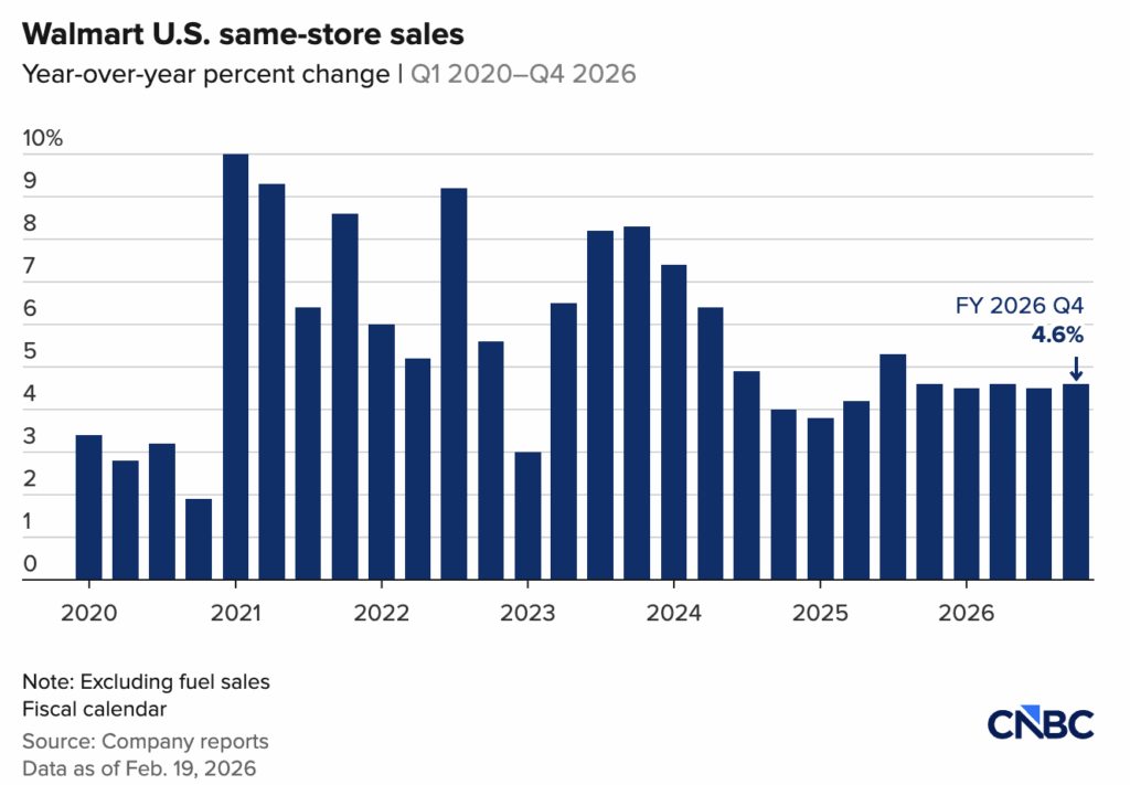 Walmart membukukan kuartal yang solid, tetapi market bereaksi negatif karena guidance EPS tahun fiskal berjalan di bawah ekspektasi. Secara klasik, ini adalah kasus beat the quarter, miss the future.