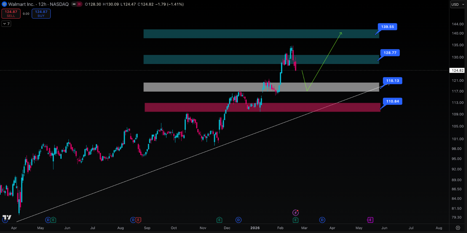 Guidance konservatif ini menekan saham karena valuasi Walmart saat ini sudah premium setelah rally ~20% YoY.