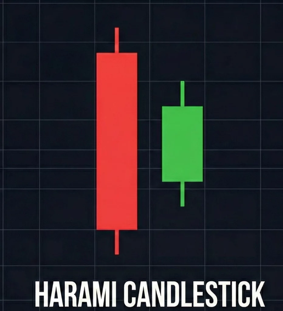 Jenis candlestick terakhir dengan pola candlestick Harami terdiri dari dua candle, di mana candle kedua lebih kecil dan berada di dalam tubuh candle pertama. Pola ini bisa bullish atau bearish, tergantung tren sebelumnya.
