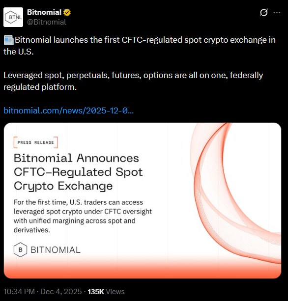 “Akhirnya. Setelah bertahun-tahun abu-abu regulasi, investor AS bisa trading spot dengan leverage tanpa harus ke bursa luar negeri yang berisiko.”