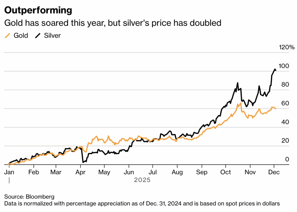Harga komoditas logam mulia melonjak tajam sepanjang 2025. Namun di tengah reli besar emas, justru silver (perak) tampil sebagai bintang utama. Di pasar London, harga silver sudah melonjak sekitar 100% year-to-date, jauh melampaui kenaikan emas yang “hanya” sekitar 60% hingga awal Desember 2025.