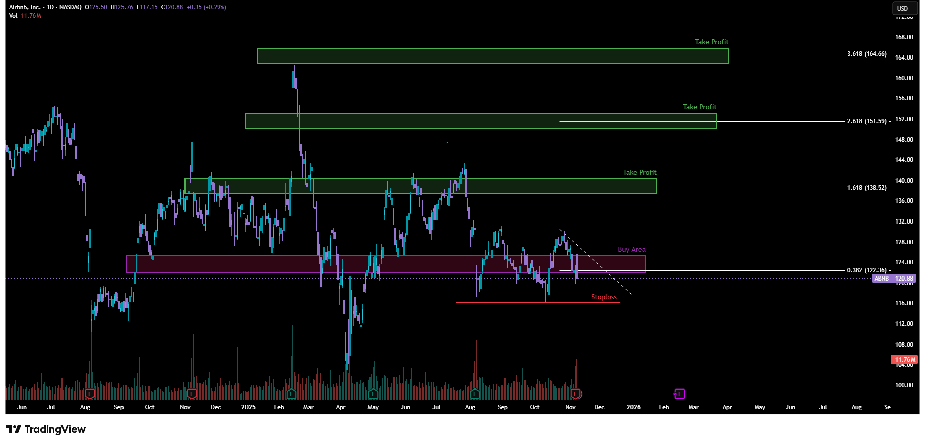 Trading Plan $ABNB: Potensi Rebound +35% dari Zona Buy $122–$126!