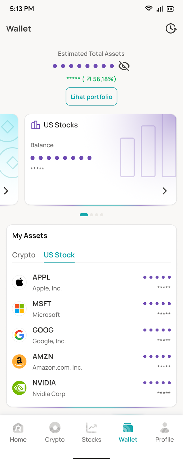 Untuk menjual US Stock menjadi Rupiah, pastikan kamu memiliki US Stock di akun Reku kamu.