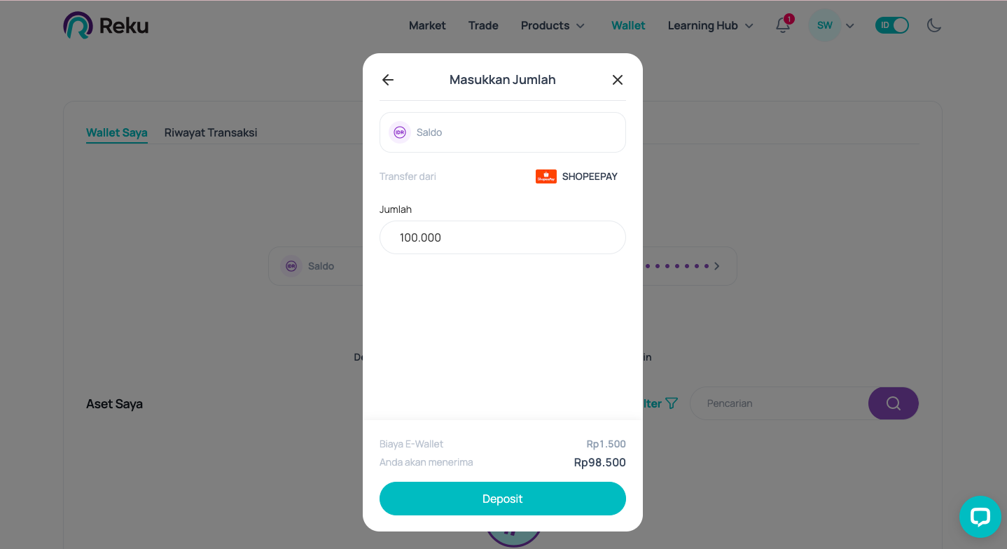 User Reku dapat melakukan deposit melalui ShopeePay. Setiap pembayaran yang masuk melalui ShopeePay akan dideteksi secara instan dan otomatis oleh sistem, sehingga tidak perlu lagi melakukan konfirmasi manual, seperti mengunggah foto atau bukti transfer. Selain melalui virtual account, kamu juga dapat melakukan deposit rupiah melalui transfer bank.