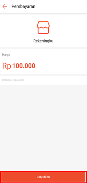 - Pada aplikasi mobile Shopee kamu, akan muncul informasi merchant dan jumlah yang akan dibayarkan, klik “Lanjutkan” untuk melanjutkan pembayaran.
