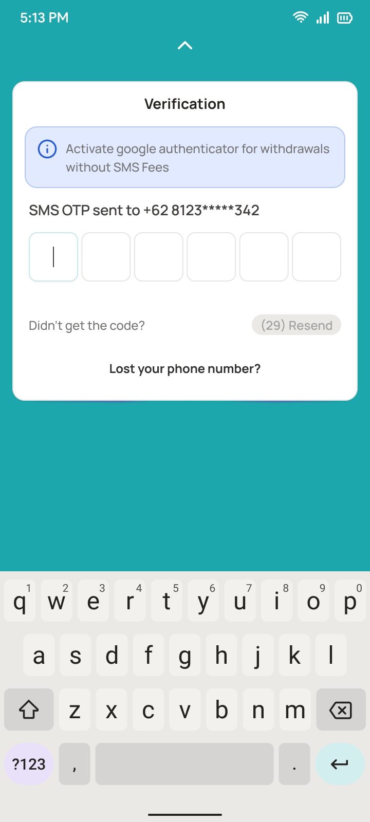 - Masukkan Authenticator (SMS atau Google Authenticator).