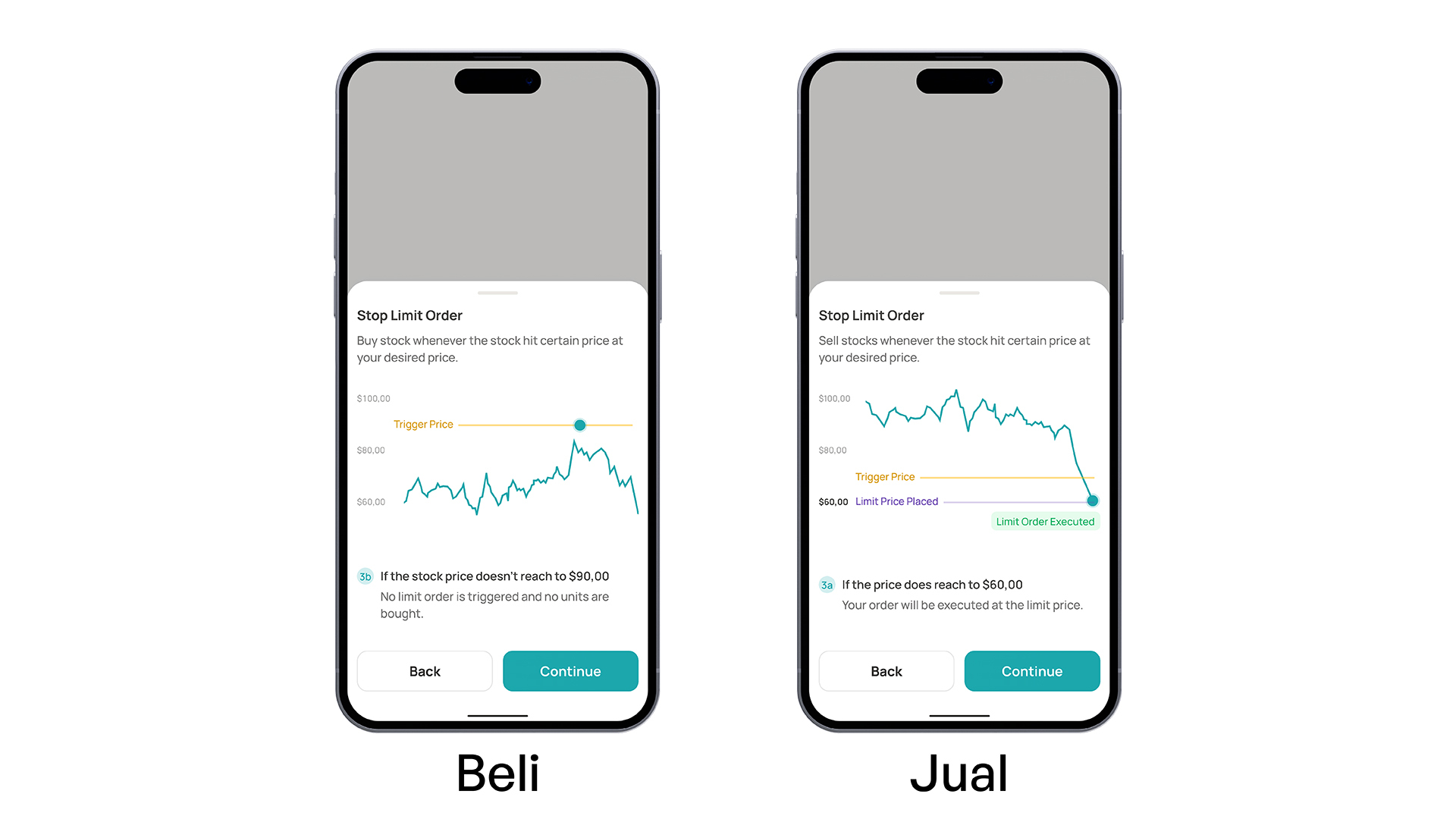 Stop Limit Order adalah kombinasi dari Stop Order dan Limit Order. Jenis order ini digunakan untuk menjual atau membeli aset pada harga tertentu setelah harga mencapai level pemicu (stop price), namun tetap dengan batas harga maksimal atau minimal yang kamu tentukan (limit price).