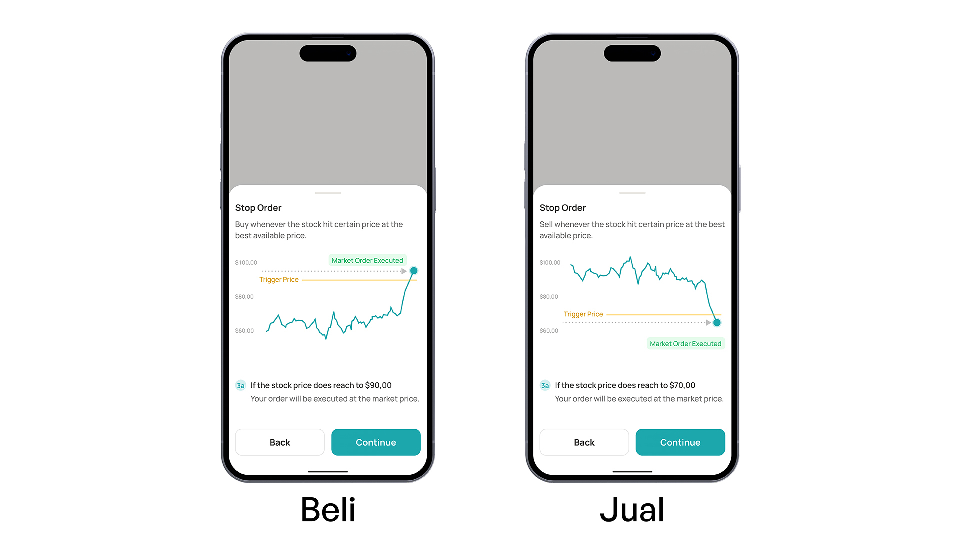 Jika kamu memiliki saham di harga $100 dan ingin membatasi kerugian bila harga turun, kamu bisa memasang Sell Stop Order di $95. Saat harga menyentuh level ini, sistem akan otomatis menjual saham kamu sehingga kerugian tidak bertambah lebih dalam.