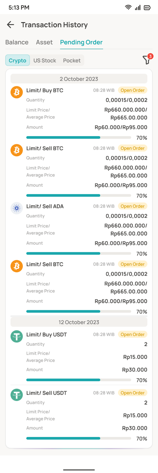 Untuk melihat open order yang telah pengguna masukan ke market, pengguna dapat mengikuti langkah-langkah sebagai berikut:
