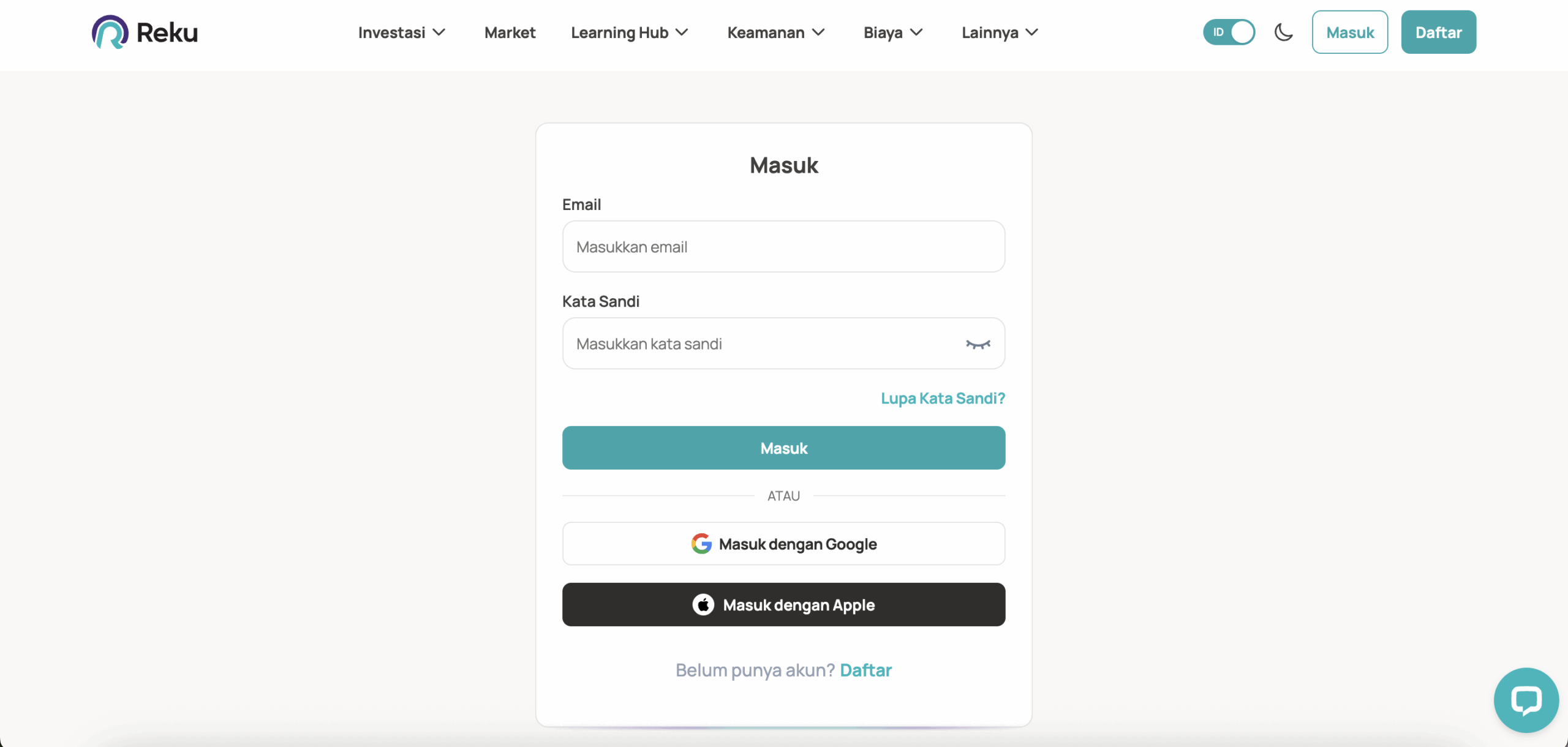 1. Masukan Email dan Kata Sandi untuk masuk ke akun Reku.
